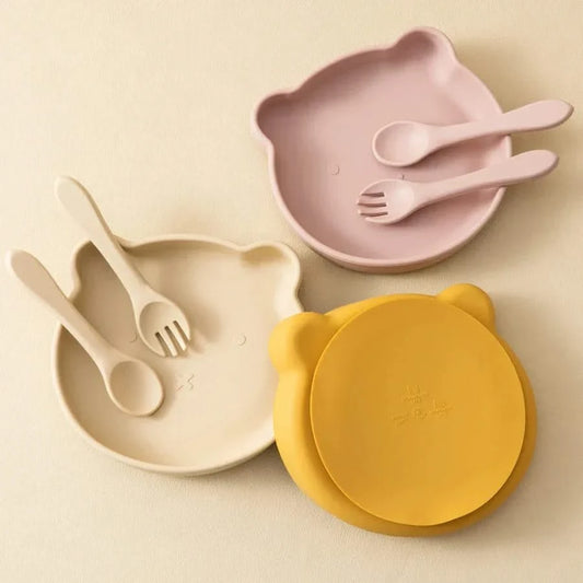 Baby Feeding Set - Silicone Suction Bowl, Plate, Spoon & Fork - BPA Free Dinnerware